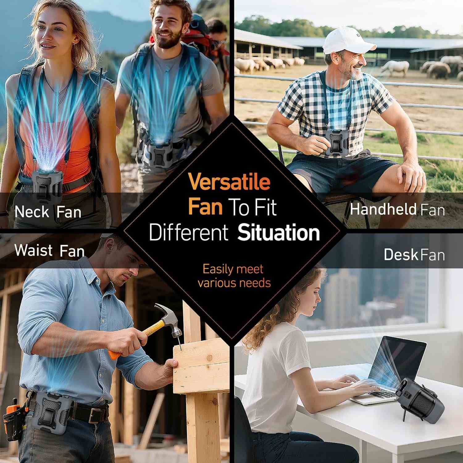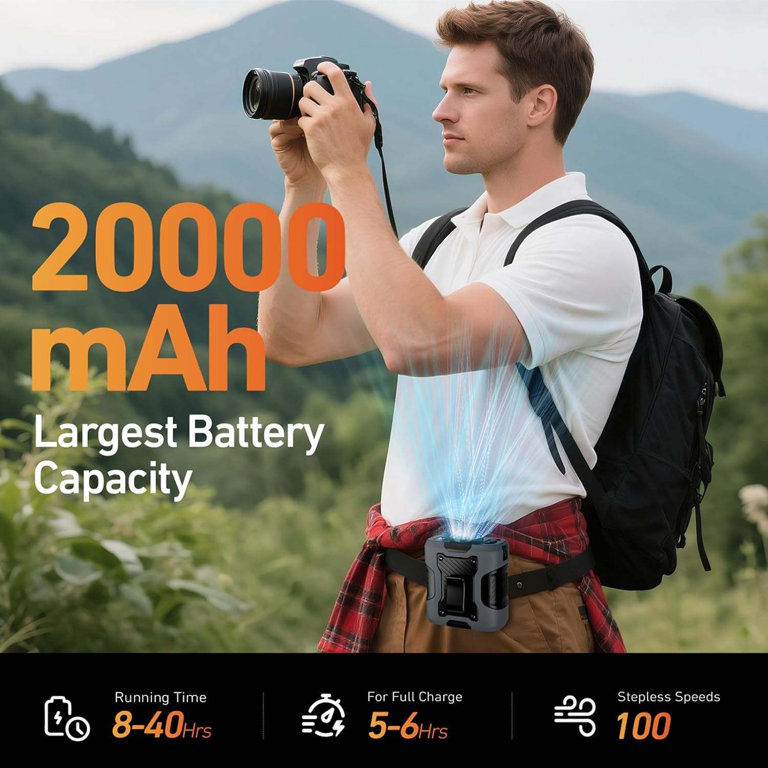 Portable Waist Fan Personal 20000mah 100 Speeds Clip On Shirt Fan Belt Cooling Device Wearable Cool Body Blow Cold Air Rechargeable Pocket Mini Men Workers Outdoor Travel Hiking Gifts.